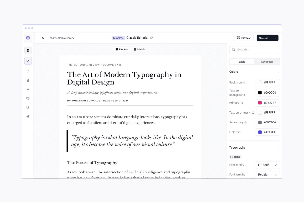 - Content-first design: Prioritises clean, readable layouts ideal for text-heavy newsletters.