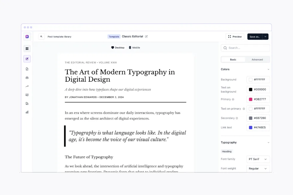 - Content-first design: Prioritises clean, readable layouts ideal for text-heavy newsletters.